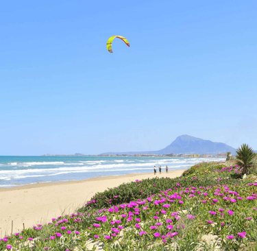 Besuchen Sie einen der längsten Strände von Dénia, der sich hervorragend für Wassersport eignet und mit der Blauen Flagge ausgezeichnet ist.