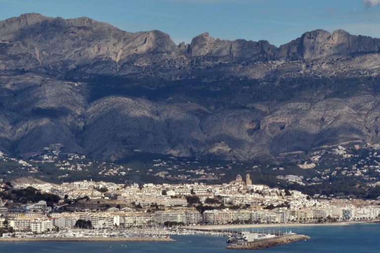 der Marina Alta. Der höchste Punkt, der Bernia-Gipfel, ist 1.128 Meter hoch und bietet einen Panoramablick auf das Mittelmeer, die Küsten von Altea und Benidorm und an klaren Tagen sogar auf die ferne Insel Ibiza. Das Gebirge ist von nahe gelegenen Städten wie Altea, Benidorm und Calpe aus leicht zu erreichen, was es zu einem beliebten Ziel für Tagesausflüge und Outdoor-Aktivitäten macht.